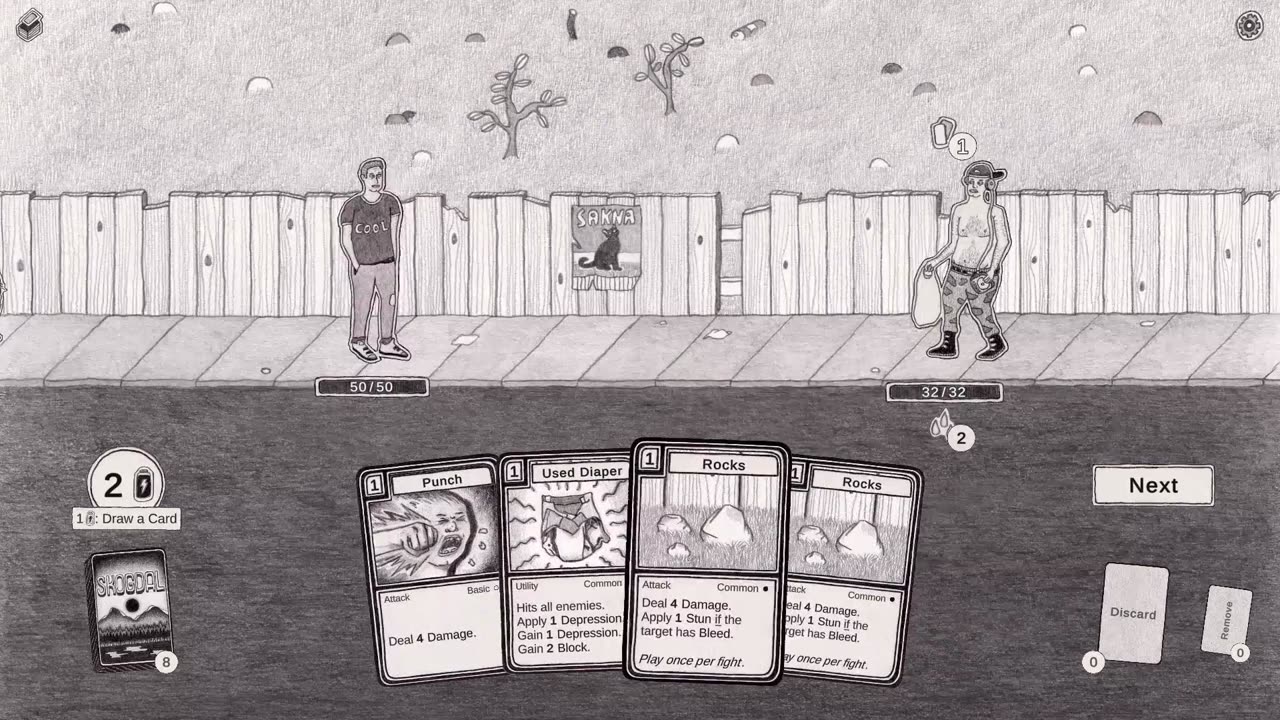 Skogdal offers more than 300 different cards for you to discover and draft. Fuse cards, build powerful combos and recruit followers to aid you in your journey: politicians, bodybuilders, wrestlers, pyromaniacs, skaters, punks, priests, pets and pests…
