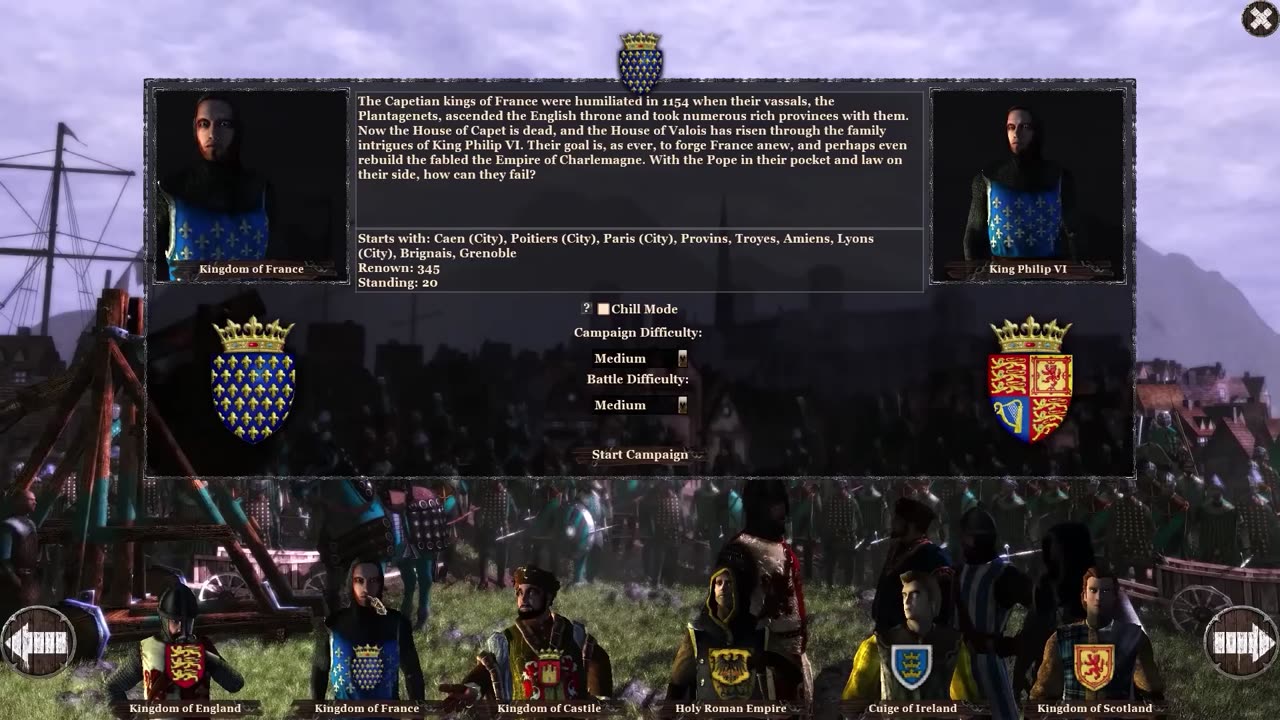 Для увеличения территории вашей королевства вы можете отправлять свои армии для захвата или защиты городов. У вас есть возможность поднять знамя «К призыву», чтобы мобилизовать вассалов и союзников на помощь в военных операциях.