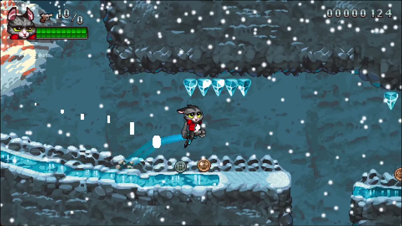 Super Catboy — это платформер в жанре экшен с элементами бега и стрельбы, созданный в стиле высокобитовой пиксель-арта. Игра сочетает классические 16-битные элементы платформенных игр конца 90-ых годов с новыми механиками, что делает каждую игру волнующей и захватывающей.