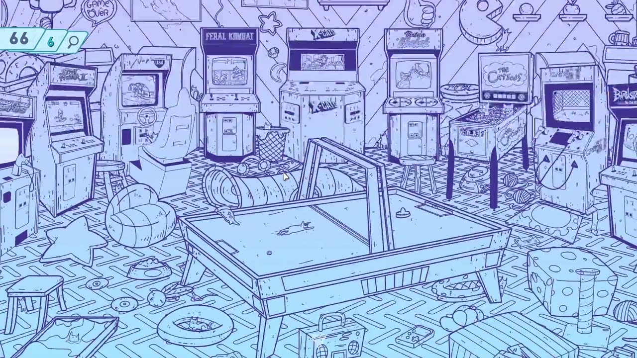 Основной механикой игры является поиск и сбор кошек, которые спрятаны по всему игровому пространству. Игроки путешествуют между пятью различными аркадами: «80-е - Ностальгия», «Классика 90-х», «Новые времена 2000 года» и другие, каждая из которых имеет своё особое оформление в стиле домашних кошек. Игра предлагает увлекательный опыт, сочетающий элементы исследования и головоломки.
