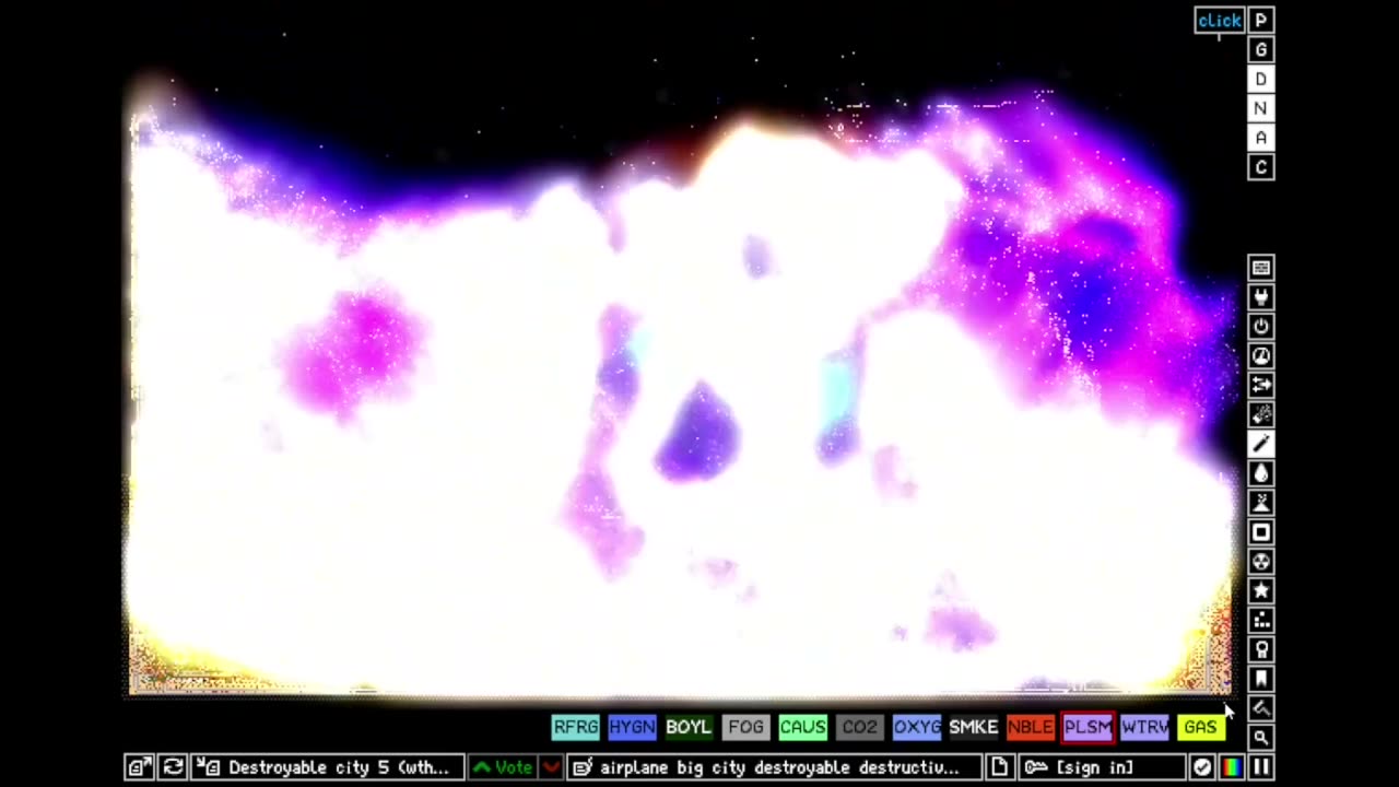 The Powder Toy — это симулятор частиц, который позволяет игрокам экспериментировать с сотнями элементов, включая взрывчатые вещества и электронику. Игра предлагает создавать реалистичные сценарии физики, такие как давление воздуха, тепло и гравитация: