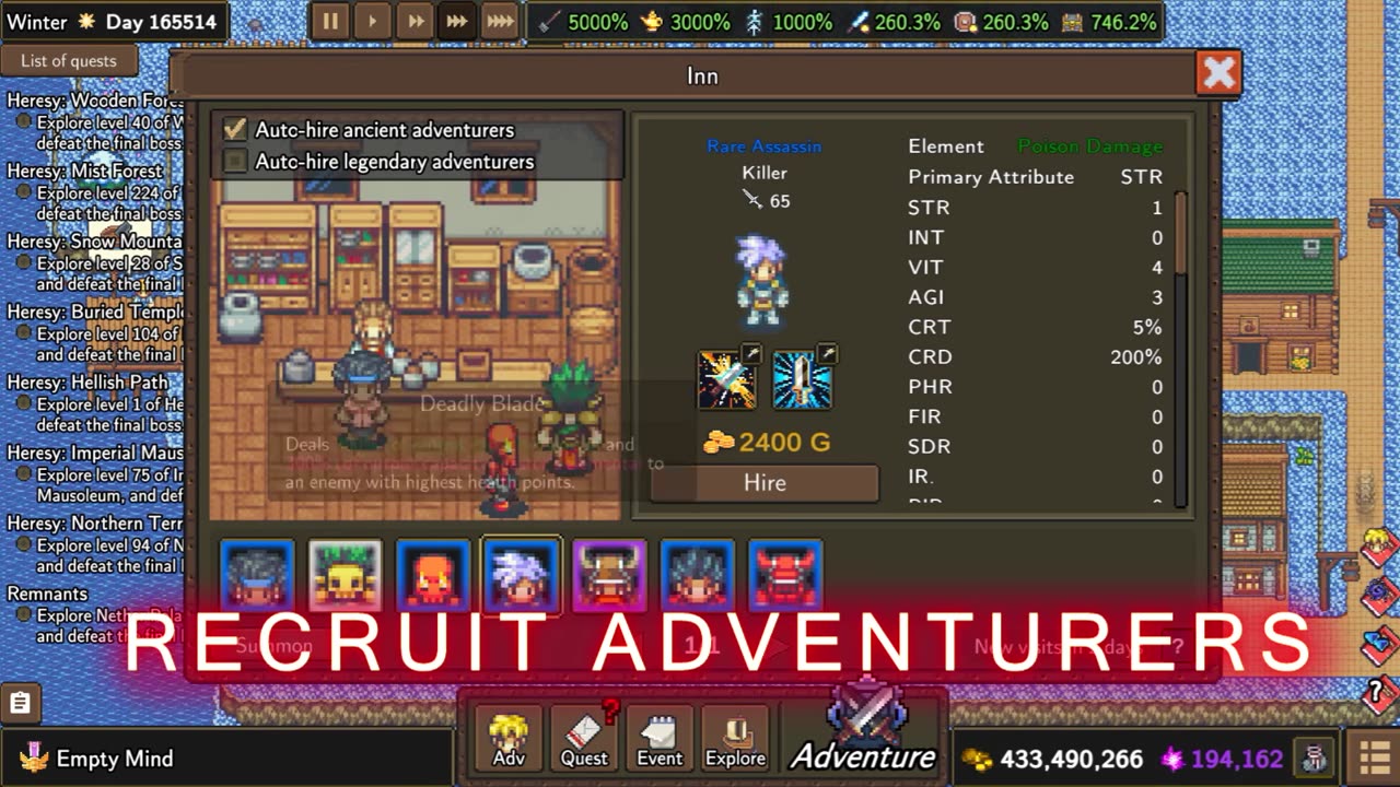 Основная механика игры заключается в системе команд на основе времени: авантюристы автоматически выполняют действия по мере заполнения их прогресса хода. Игроки могут использовать мощные тактики, тратя 'очков гнева', что позволяет избежать микроменеджмента и делает бои динамичными.
