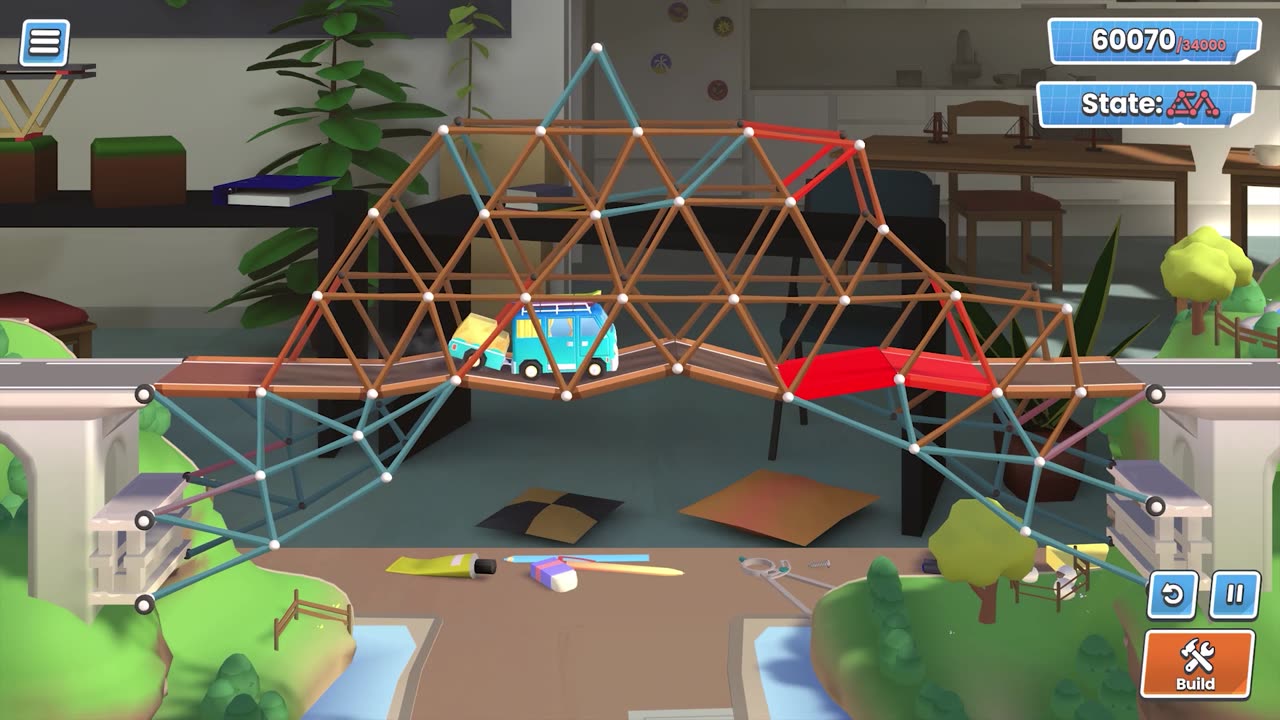 Bridge Constructor Studio — это игра для энтузиастов инженерных головоломок и игроков, предпочитающих сэндбокс-режимы. В роли архитектора мостов вам предстоит создавать конструкции в анимированном 3D-виде и проверять их устойчивость. Игра предлагает более 70 сложных головоломок, где нужно использовать разнообразные материалы (дерево, сталь, канаты, бетонные столбы) для строительства мостов в разных природных зонах: от городских небоскребов до снежных ущелий и лесистых долин.