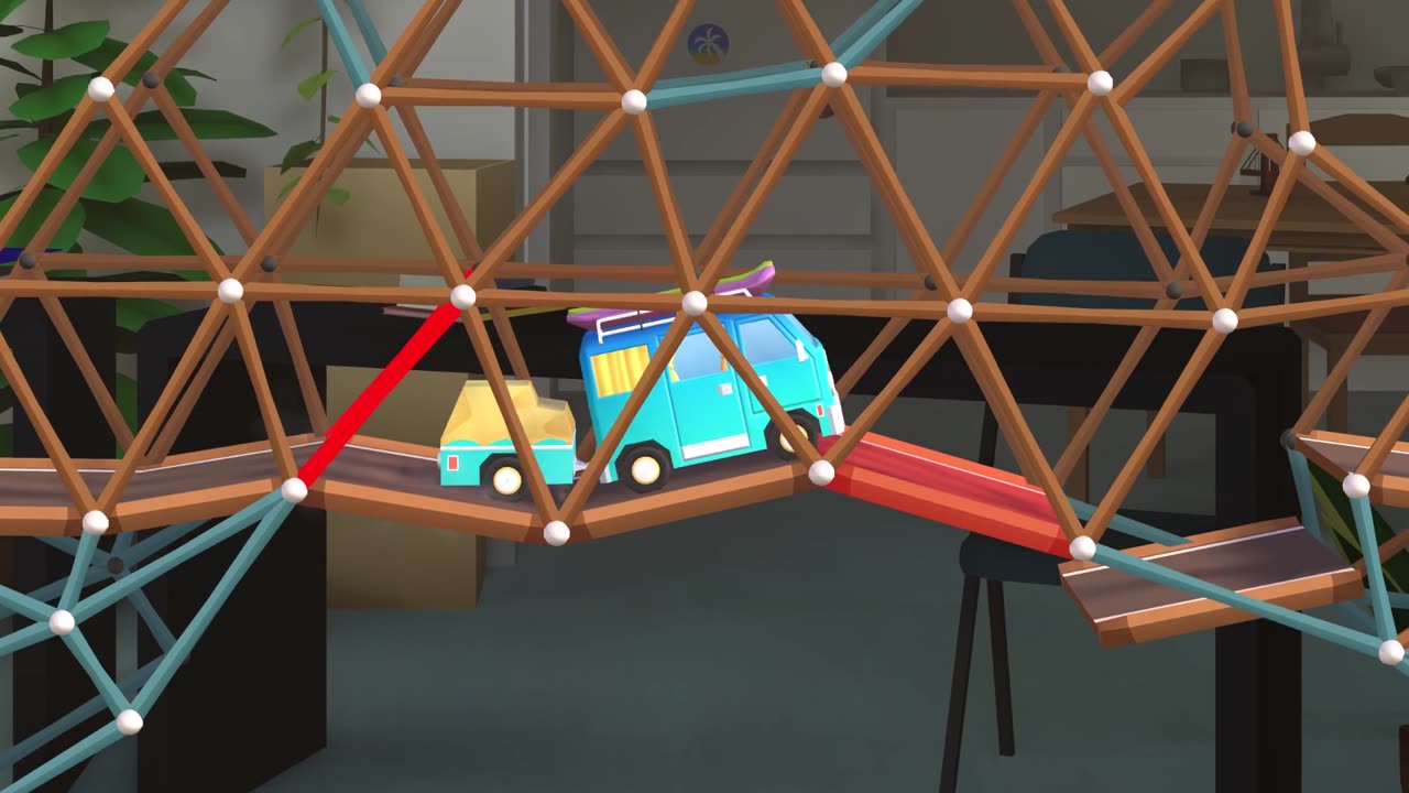 - Возможность создавать мосты через пять различных биомов, каждый из которых предлагает свои физические и инженерные задачи. В наличии семь специализированных транспортных средств с разными характеристиками, такими как грузовые автомобили для перевозки леса или амфибии.