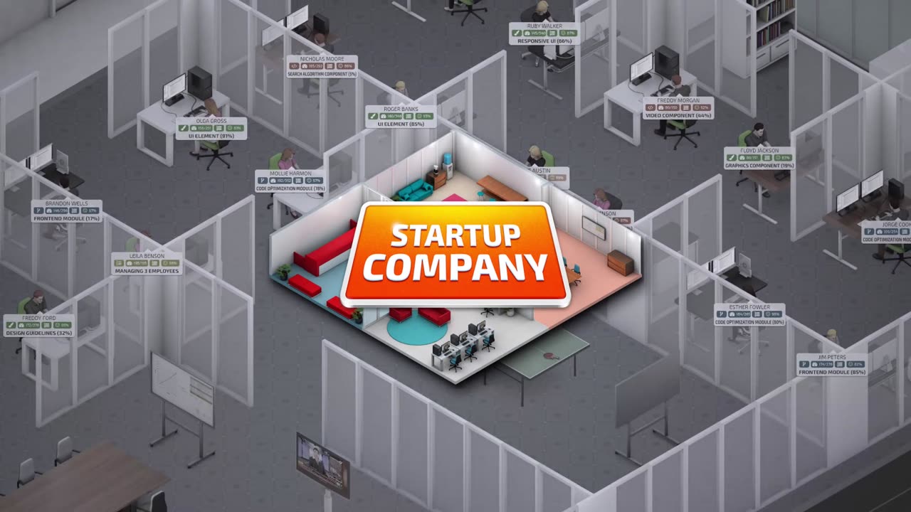 Игрокам предстоит управлять офисом: организовать пространство и декорировать его таким образом, чтобы сотрудники оставались довольными. Управление стартапом требует внимания к деталям: от найма и обучения персонала до обеспечения стабильной работы серверов и проведения удачных маркетинговых кампаний. В процессе игры вы столкнетесь с дилеммой выбора между приобретением конкурентов или просто обгоняя их в стремлении к успеху на рынке.
