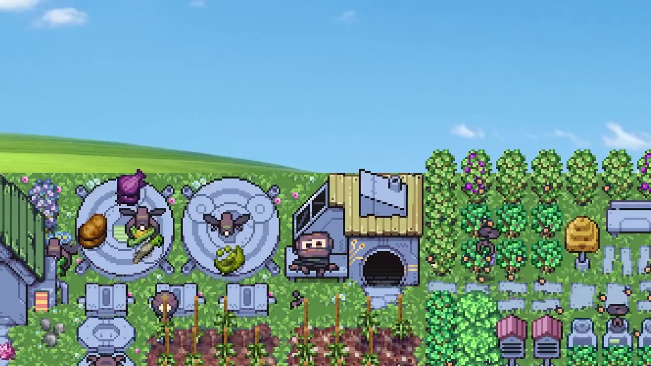 Разместите команду милашек-роботов, которые помогут в посадке, поливе и сборе урожая. Настройте и обновляйте своих помощников, чтобы повысить эффективность работы.