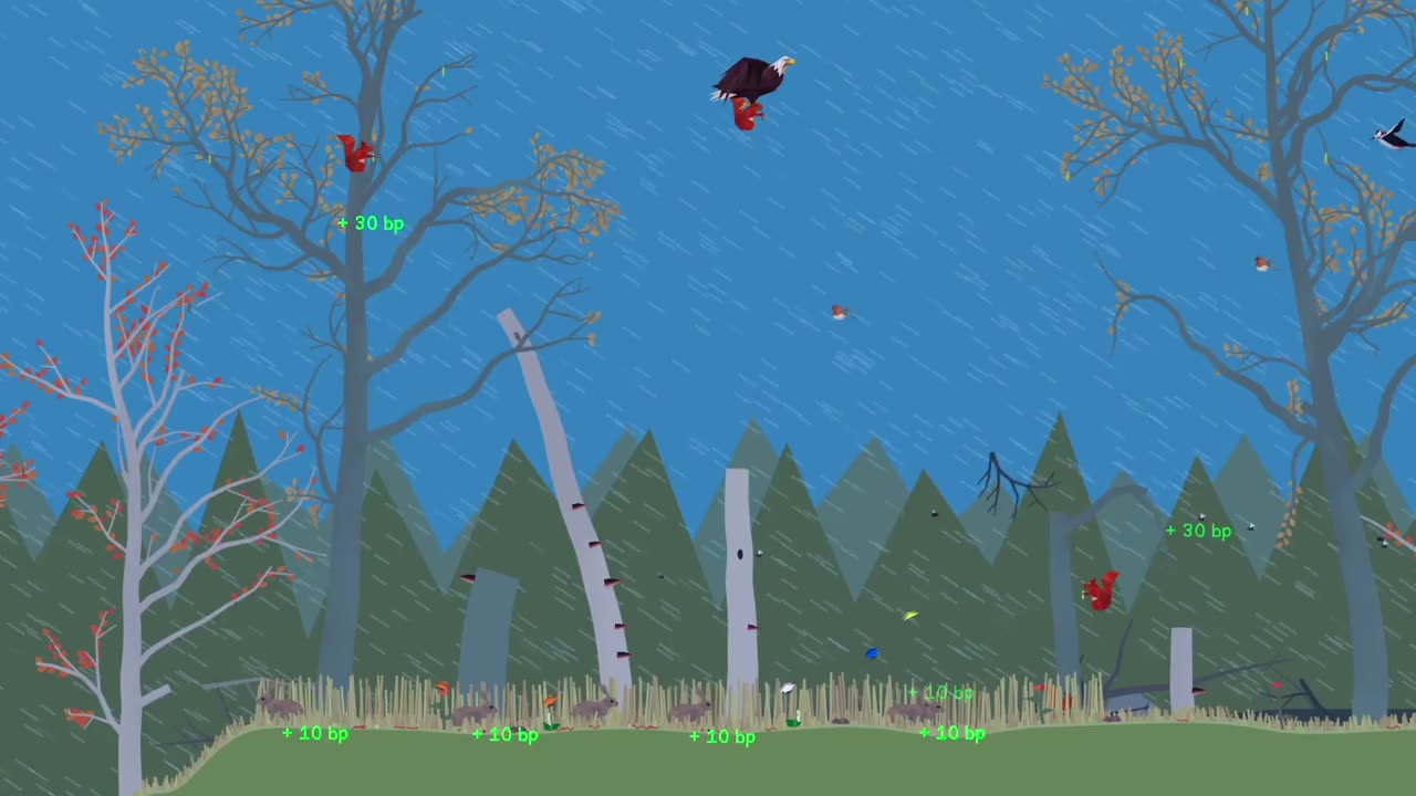 Ваша задача — развивать многоуровневую экосистему: начиная с прорастания семян в почву, выращивания саженцев, взрослых деревьев до их усыхания и разложения. Каждый этап открывает новые места обитания для множества видов животных. Например, белки нуждаются в деревьях, а бабочки — в цветах.