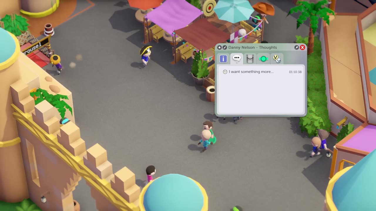 Управление парком требует не только строительства, но и ведения финансовых операций и поддержания высокого уровня удовлетворенности посетителей. Организуйте поток ресурсов к магазинам без помех для гостей и держите служебные зоны вне поля зрения общественности.