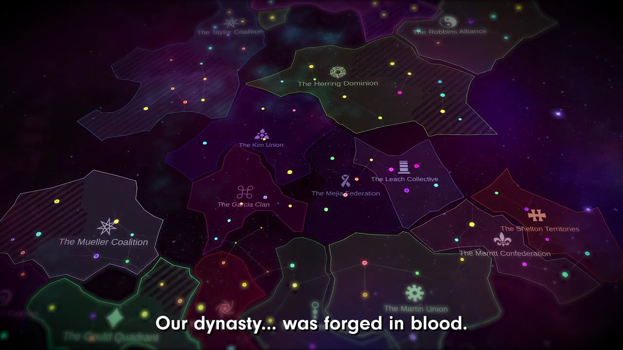 The story unfolds in a procedurally generated galaxy filled with hundreds of emergent characters who each pursue their goals, adding depth and unpredictability to every decision you make. Your actions will impact not only yourself but also the destiny of your heirs and empire.