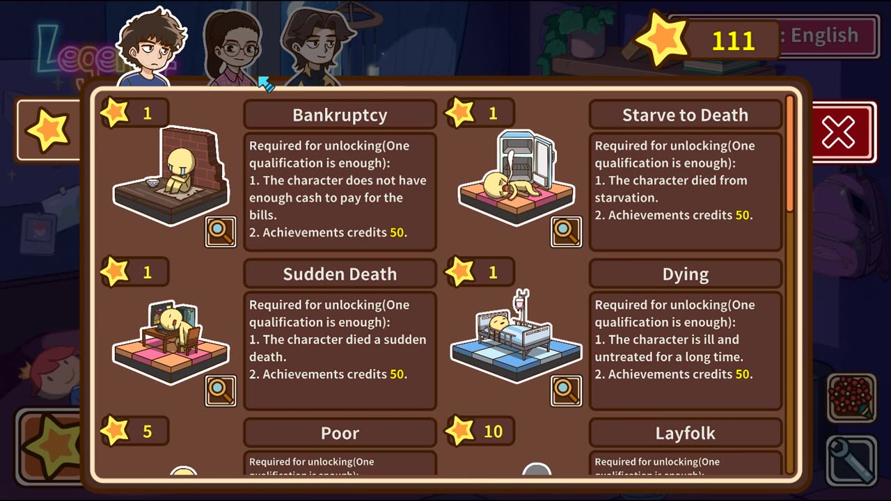 7. Кнопка выхода (стрелка): отправляет персонажа к врачу; если персонаж заболел, требуется время и деньги для выздоровления.