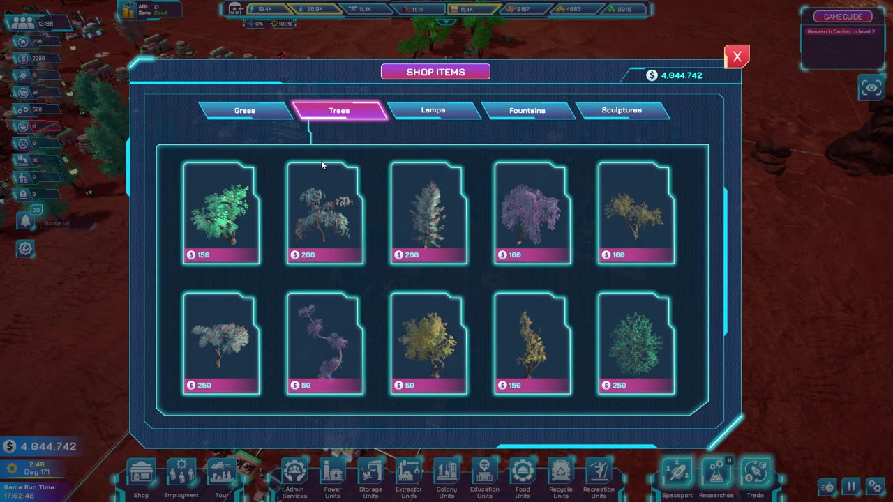 Ваша задача заключается в оптимизации пространства вокруг этих кластеров для повышения эффективности всех единиц, подчинённых им. Основным улучшением станет обновление Принципиального Ровера — ядра вашей колонии.