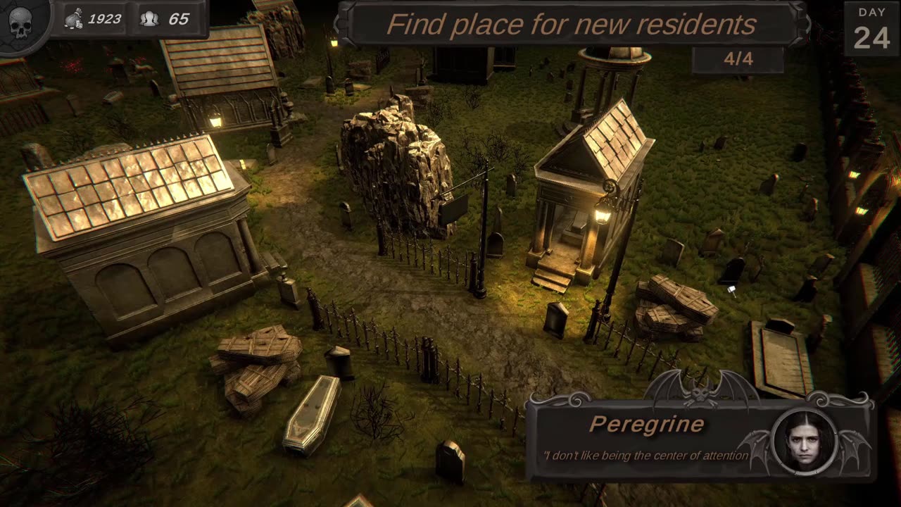Игра разделена на две фазы: дневную и ночной период. В дневное время вы должны эффективно выполнять захоронения, декорировать территорию и размещать объекты таким образом, чтобы обеспечить безопасность от потенциальных нападений в ночное время. Ночная фаза — это испытание на выживание: вам придется сражаться с мертвецами, которые стремятся вырваться за пределы кладбища, и использовать все доступные средства для защиты территории до восхода солнца.