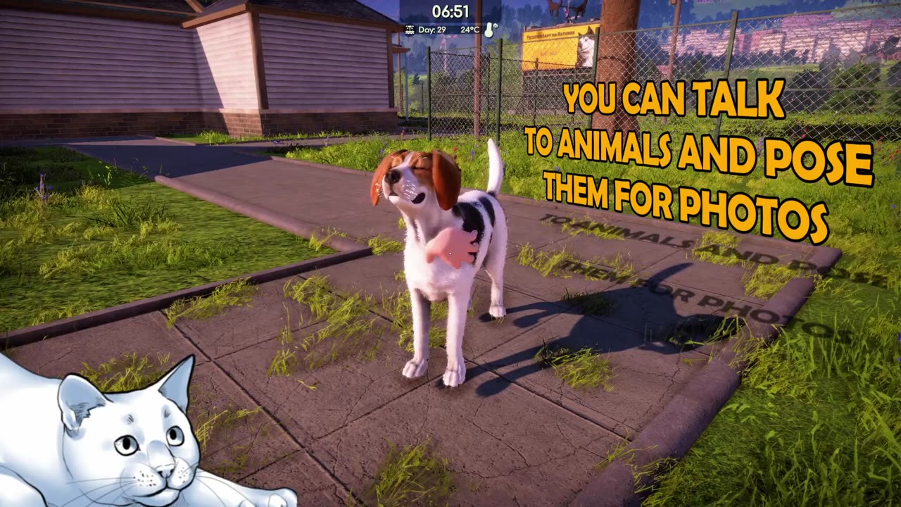 Зоогостиница расположена в живописном маленьком городке среди леса и гор. Вашей задачей будет поддерживать порядок и регулярно проводить улучшения, чтобы она гармонично сочеталась с окружающей природой. Просмотрите её как днем, так и ночью — наслаждайтесь красотой.