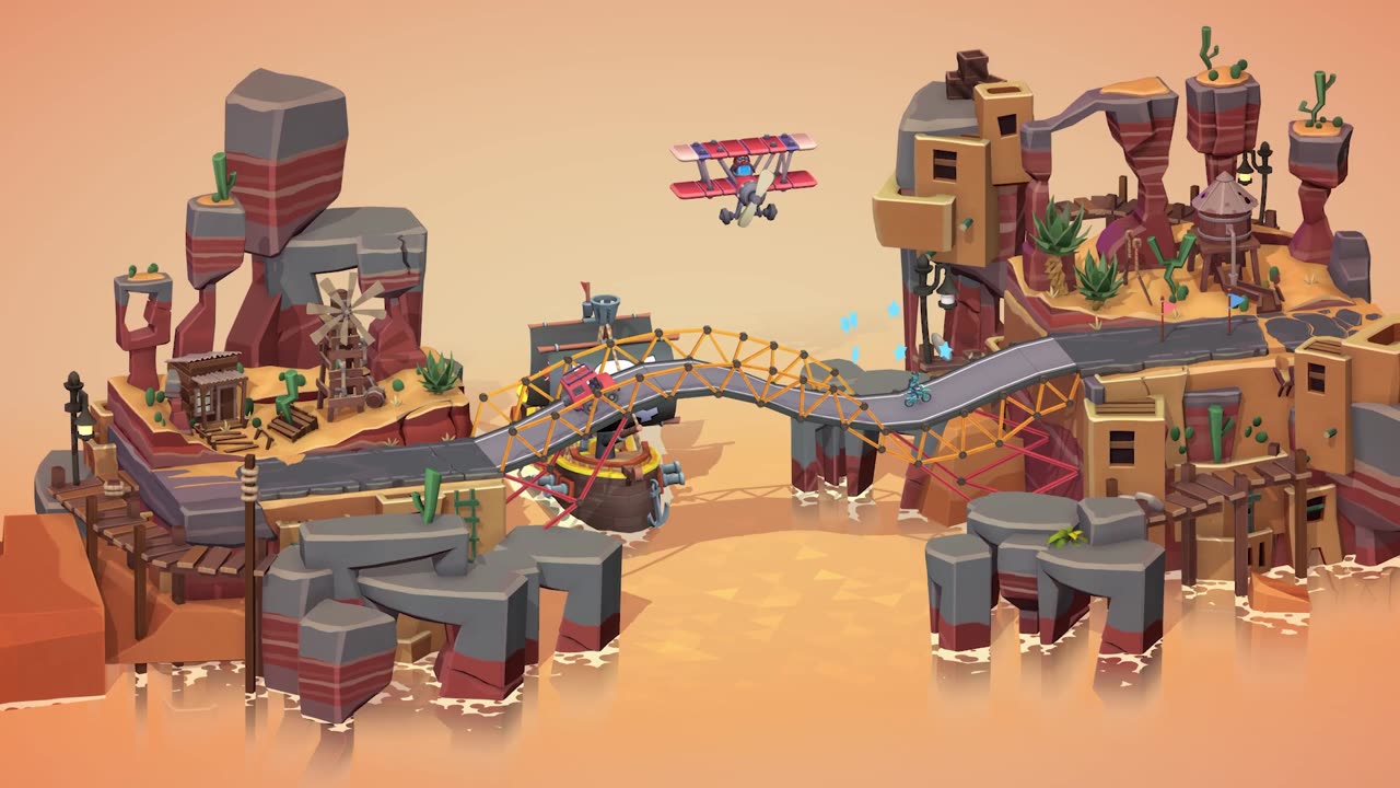 Кампания включает такие уровни, как Vaulting Towers для прыжков и Bifrost Bend для использования гидравлики. В режиме Сэндбокс игроки могут ограниченно творить без рамок, что позволяет им создавать сложные конструкции мостов и делиться своими уровнями в Steam Workshop.