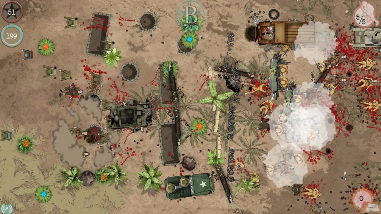 2. Оборона точки: Для классического подхода — стилизованного под «Mud and Blood 2». Продвигайтесь вперед, находя выгодную местность для размещения войск или приобретая командные очки на новые солдаты и оборонительные сооружения. Остановка невозможна — это безжалостное испытание.